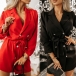 Fashion Notch Lapel Double-breasted Self-tie Long Sleeve Suit Dress