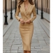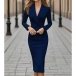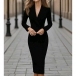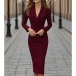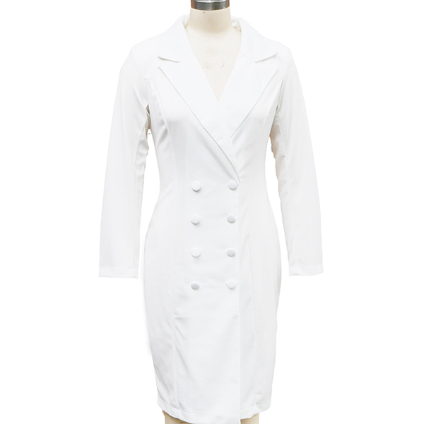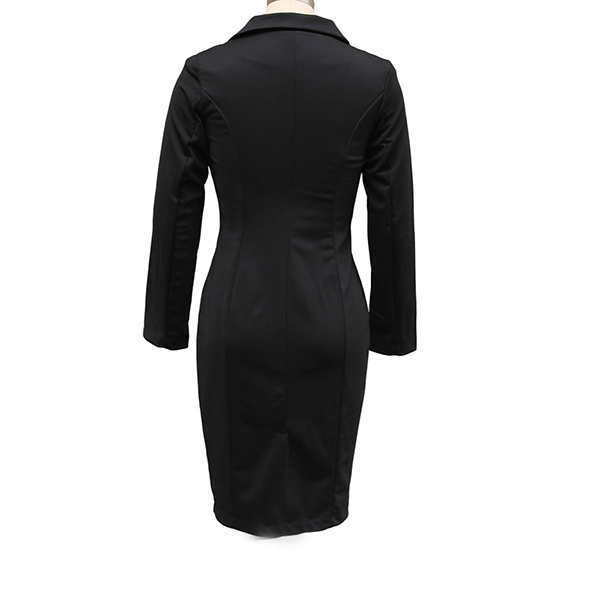 Fashion Notch Lapel Long Sleeve Double-breasted Bodycon Dress