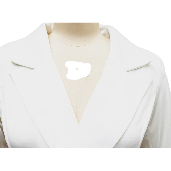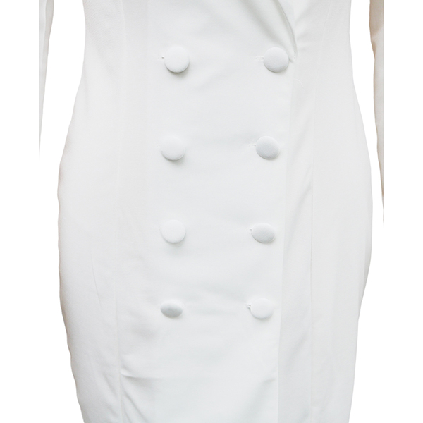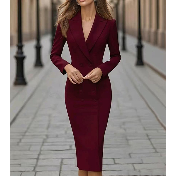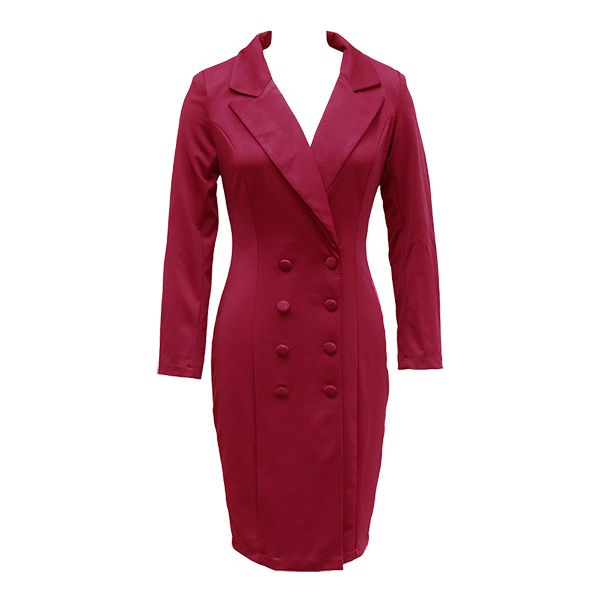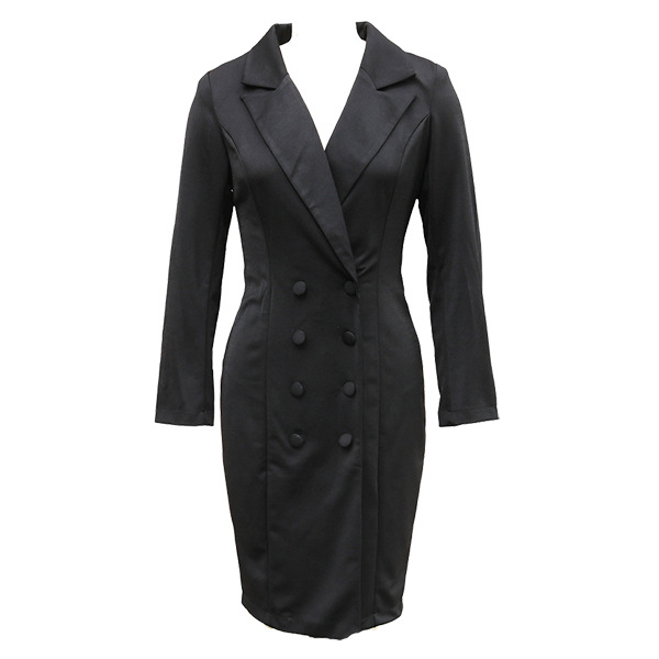 This elegant dress features contemporary fashion styling with structured notch lapel construction and classic double-breasted design for modern tailored sophistication. Perfect for semi-formal or formal occasion.