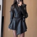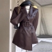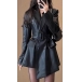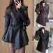 Blazer en similicuir à revers crantés, manches longues, double boutonnage asymétrique et ceinture