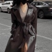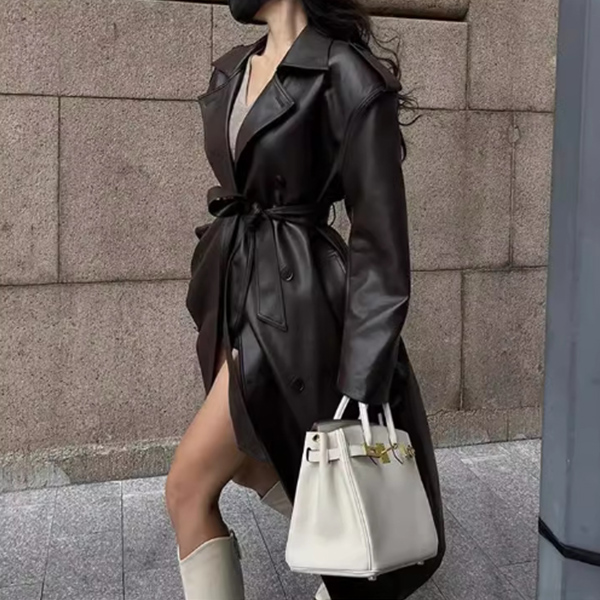 This jacket features a notch lapel design and double-breasted closure that exudes a classic and timeless look, while the self-tie waist belt adds a modern and chic touch. Crafted from high-quality artificial leather PU material with meticulous attention to detail, this Longline Jacket is designed to be comfortable, stylish, and on-trend.