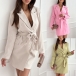 Fashion Notch Lapel Long Sleeve Double-breasted Suit Dress