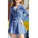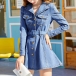 Fashion Notch Lapel Long Sleeve Front Button Denim Dress with Belt