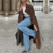 This long-line brown jacket can be styled in a variety of ways to suit your personal style. Pair it with tailored pants and a blouse for a professional and polished look, or layer it over a dress for a more elegant and refined ensemble.