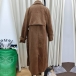 Fashion Notch Lapel Long Sleeve Long-line Brown Jacket