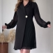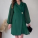 Fashion Notch Lapel Long Sleeve Pleated Dress