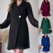 Embrace elegant sophistication with this stunning pleated dress. Crafted with a flattering notch lapel collar and long sleeves, this versatile piece seamlessly transitions from the office to evening events.The pleated, mini-length skirt creates a flowing, feminine silhouette that flatters the figure. Wanna have a try?