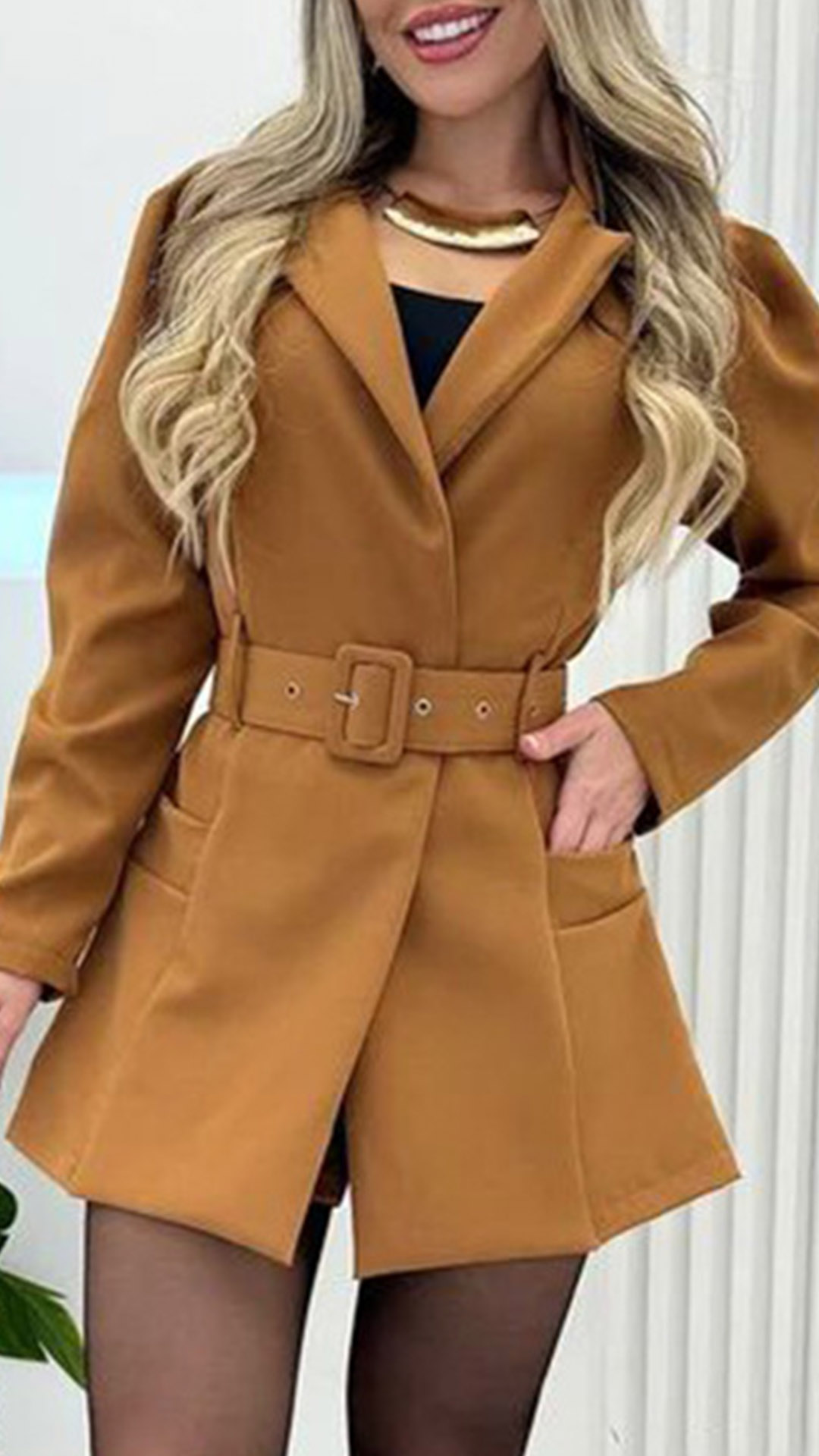 This romper features a notch lapel, long sleeves, and a stylish belt, creating a sophisticated and chic look. Pair it with boots and statement jewelry for a sleek and stylish outfit.