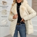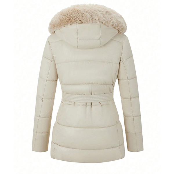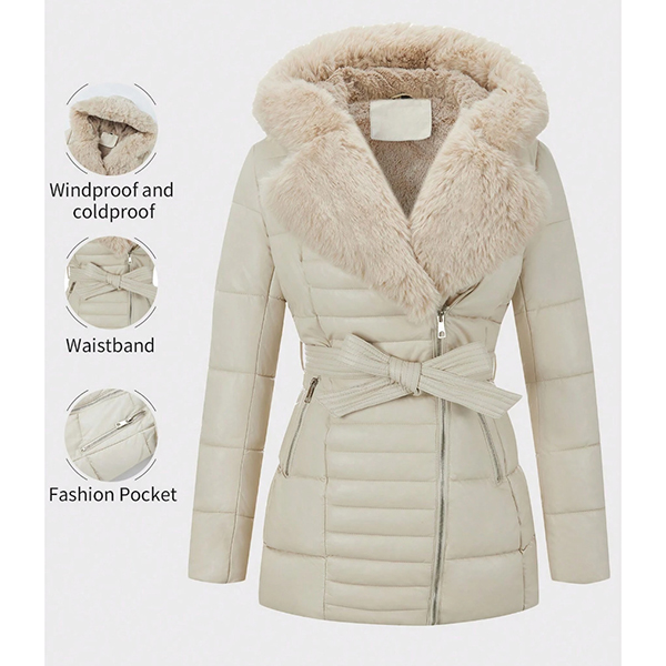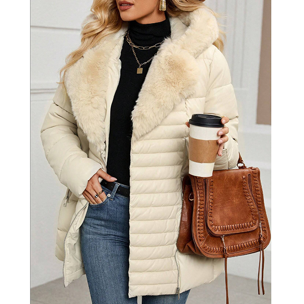 Fashion Notch Lapel Long Sleeve Slant Zipper Hoodie Warm Plush Lined Quilted Coat