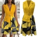 Fashion Notch Lapel Sleeveless Floral Printed Dress