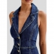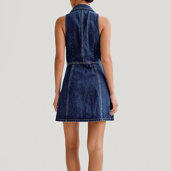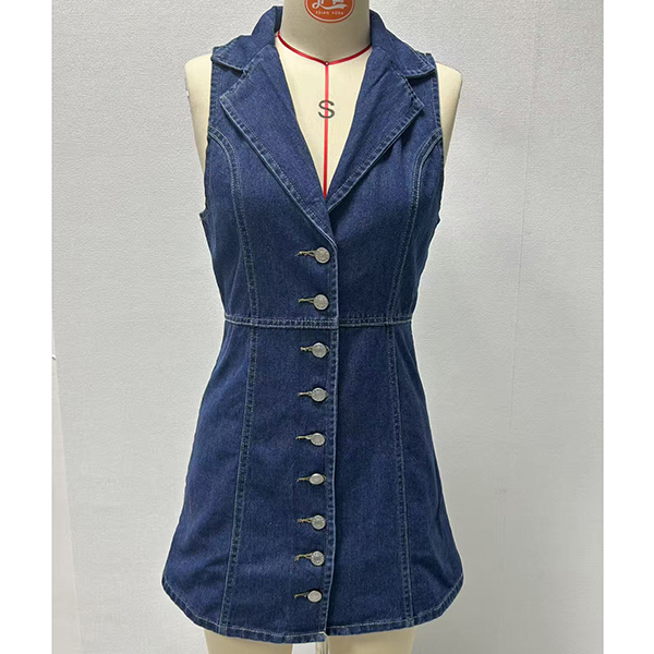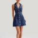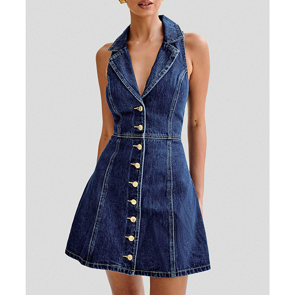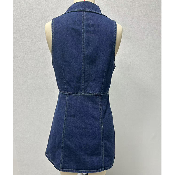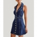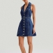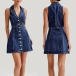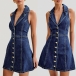 Fashion Notch Lapel Sleeveless Front Button Old-washed Denim Dress