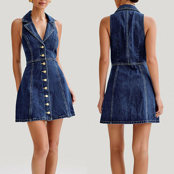 This is a trendy and stylish dress that combines vintage charm with modern flair. The notch lapel adds a touch of sophistication, while the front button detailing gives it a classic and timeless look, while the old-washed denim fabric adds a retro and lived-in feel. Perfect for day-to-day wear or a casual outing, this denim dress is a must-have for those who love fashion with a touch of nostalgia.
