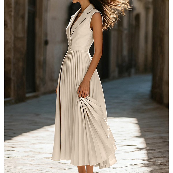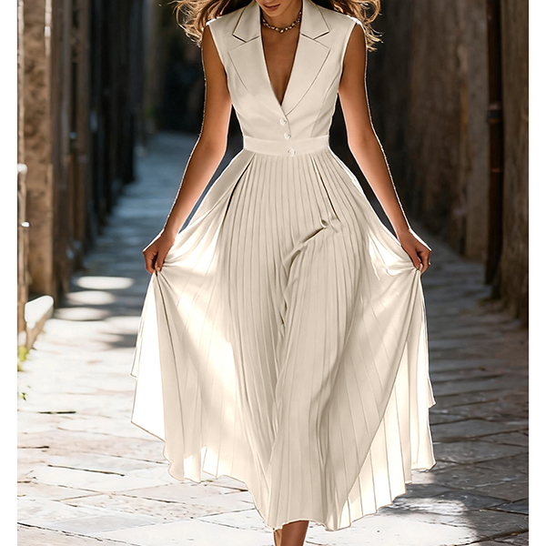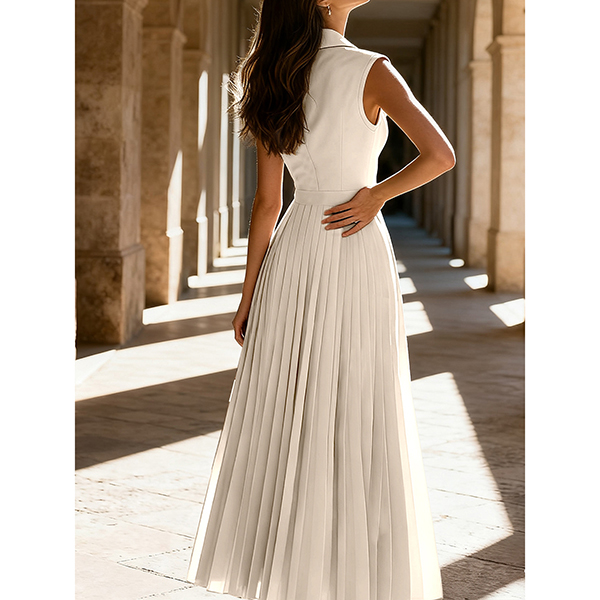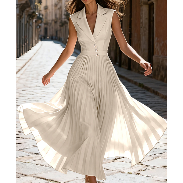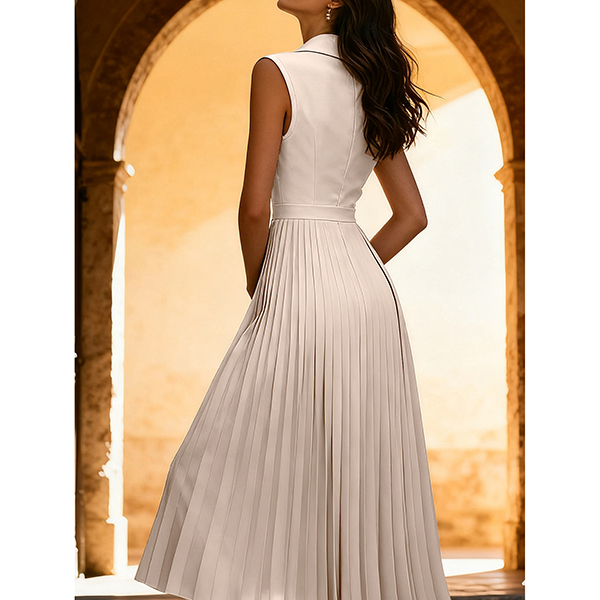 Fashion Notch Lapel Sleeveless High-rise Pleated Dress