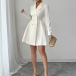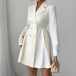 Fashion Notch Lapel V-neck Double-breasted Long Sleeve Suit Dress