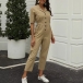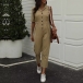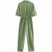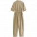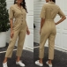 Fashion Notch Lapel V-neck Short Sleeve Front Button Jumpsuit