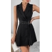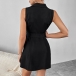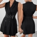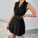 Fashion Notch Lapel V-neck Sleeveless Double-breasted Suit Dress with Belt