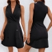 Fashion Notch Lapel V-neck Sleeveless Double Breasted Suit Dress