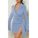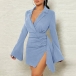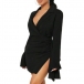 Fashion Notch Lapel V-neck Trumpet Long Sleeve Side Slit Bodycon Dress