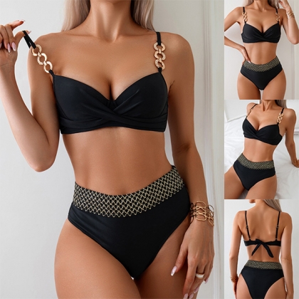 Fashion O-ring Contrast Color Two-piece Bikini Set