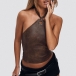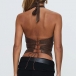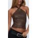 This is a bold and edgy crop top that exudes modern sophistication and fierce charm. It features halterneck, backless, back lace-up and front O-ring design. Crafted from artificial leather PU material, this crop shirt has a luxurious and edgy feel that is perfect for making a statement. Pair this crop shirt with high-waisted pants or a skirt and heels for a sleek and edgy look.