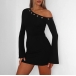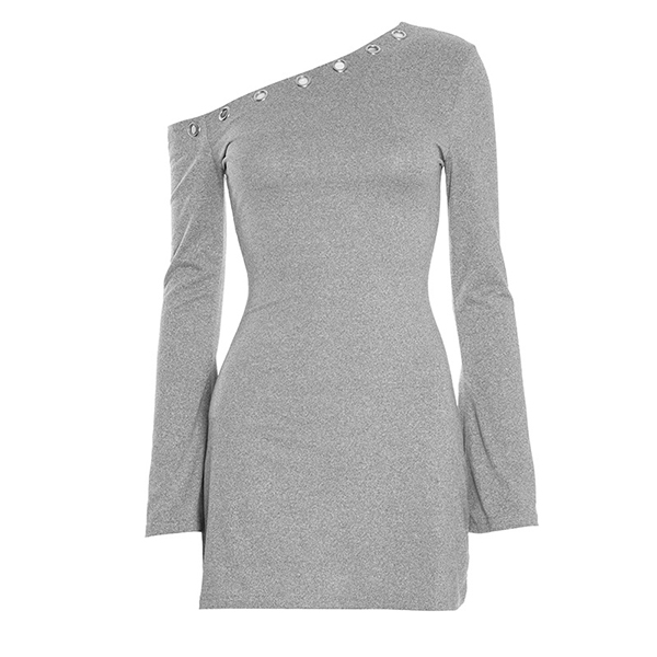 This striking dress features dramatic slant shoulder with modern O-ring hollow-out detailing and figure-flattering bodycon silhouette for contemporary architectural elegance.Wanna have a try?