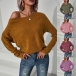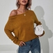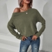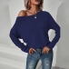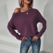 Fashion Oblique Shoulder Long Sleeve Solid Color Loose T-shirt
