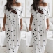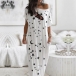 Fashion Oblique Shoulder Short Sleeve Star Printed Hollow Out Dress