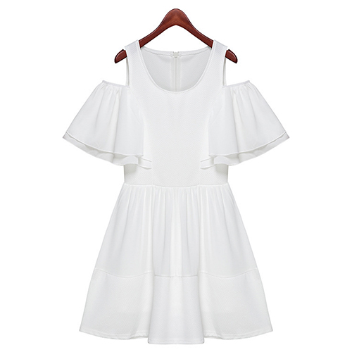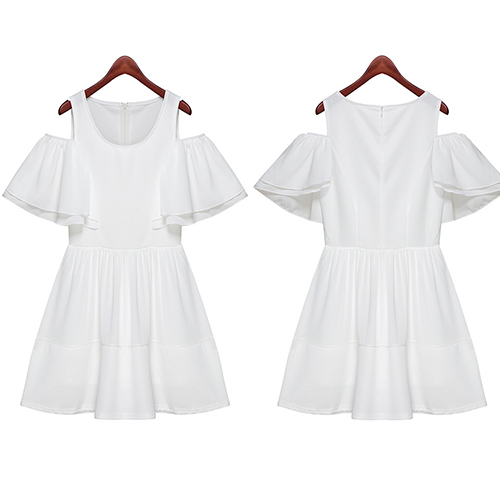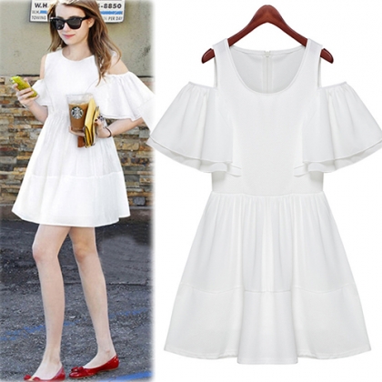 So sweet and elegant you are in this dress. It features solid color style,with off-shouder and