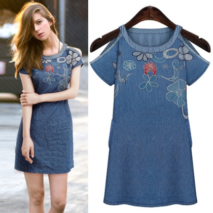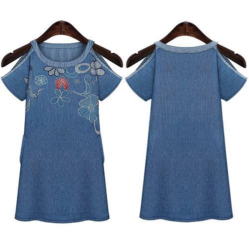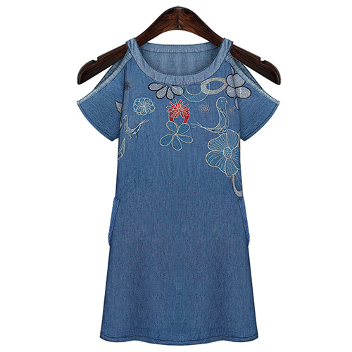 featuring off-shoulder style,with exquisite embroidery design. Short sleeve and round neck style.