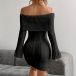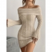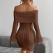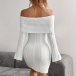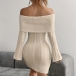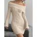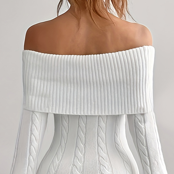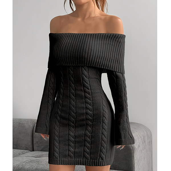 This romantic sweater dress features elegant off-shoulder styling with classic cable knit pattern for sophisticated femininity. The off-shoulder neckline creates graceful elegance whilst the cable texture adds traditional craftsmanship appeal with timeless charm.Perfect for date occasions, autumn styling, or romantic social events.
