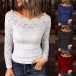 Fashion Off-the-shoulder Long Sleeve Lace Shirt