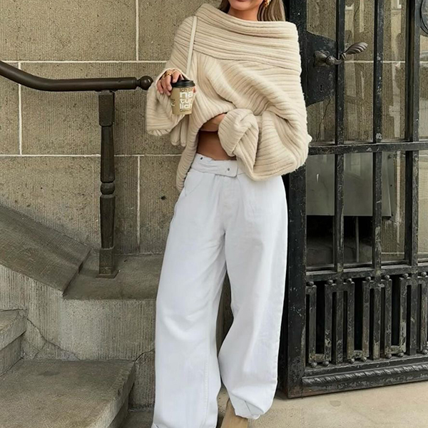 Stay stylish and cozy with this Sweater. This trendy piece features a flattering off-the-shoulder design that adds a touch of allure, while the long sleeves provide warmth and comfort. Crafted from soft, breathable fabric, it’s perfect for layering or wearing on its own. Wanna have a try?