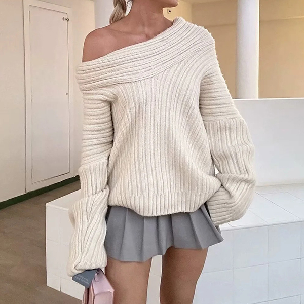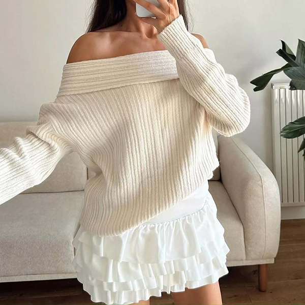 Fashion Off-the-shoulder Long Sleeve Sweater