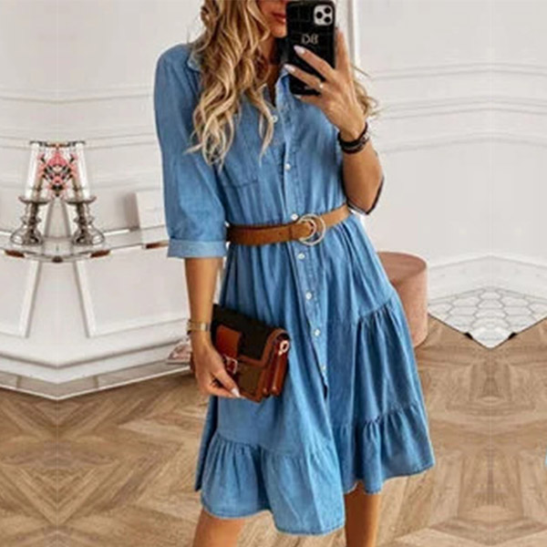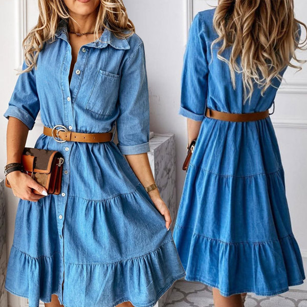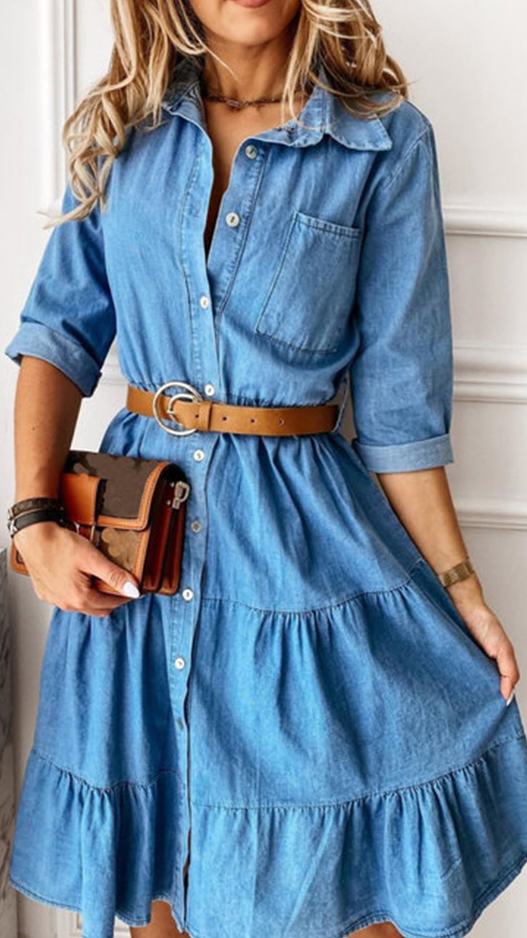 This denim dress features a unique and vintage-inspired old-wash denim fabric with a stand collar and long sleeves. The tiered detailing adds a playful and feminine touch to the overall design, creating a flattering and flowy silhouette. Wanna have one?