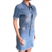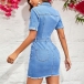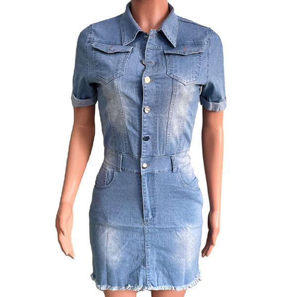 Fashion Old-washed Buttend Stand Collar Shortr Sleeve Pockets Frayed Hemline Bodycon Denim Dress