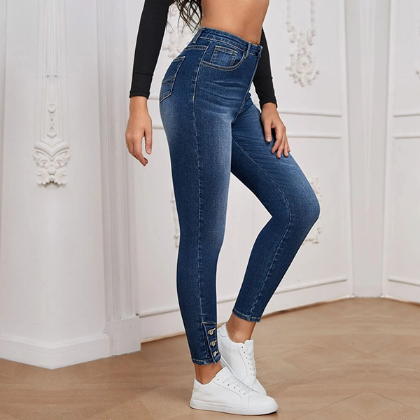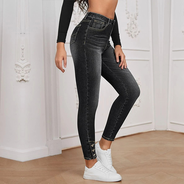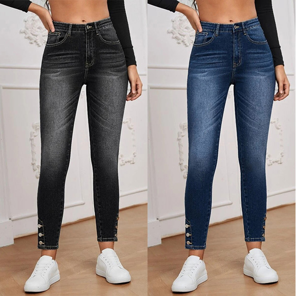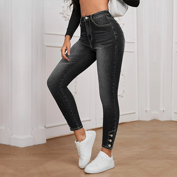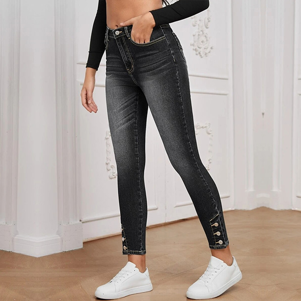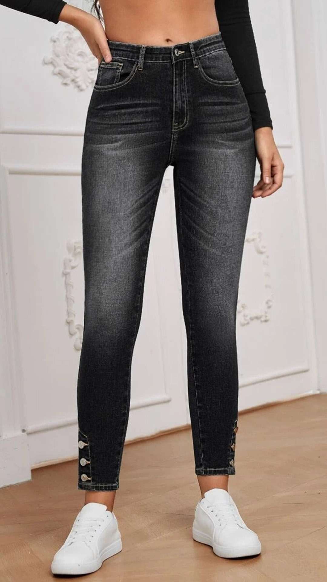 Crafted with high-quality denim, these jeans offer both style and comfort. The button along the hem adds a unique and retro element to the jeans. The old-wash effect gives them a vintage and worn-in appearance, adding a touch of authenticity and character to the piece.