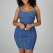 Fashion Old-washed Buttoned Slip Bodycon Denim Dress