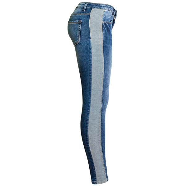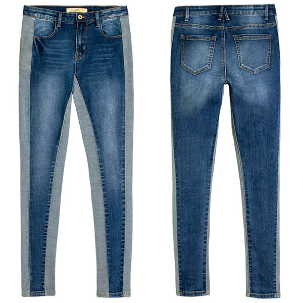 Fashion Old-washed Contrast Color Mid-rise Skinny Jeans