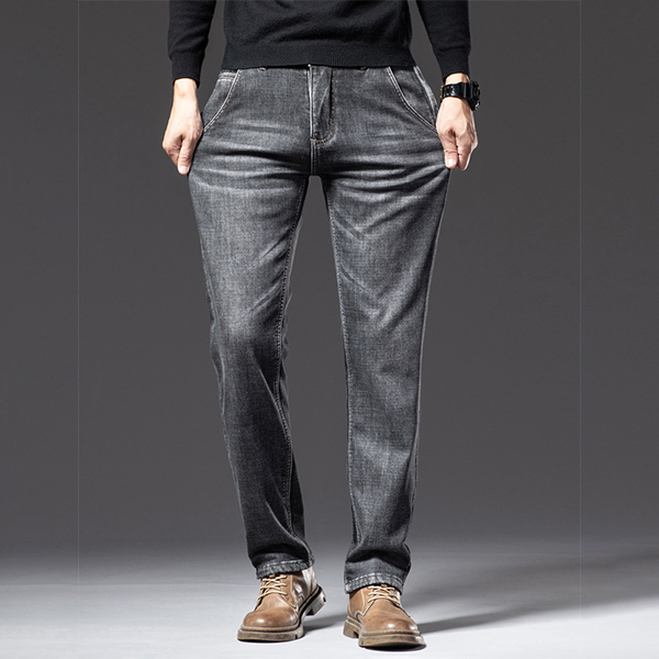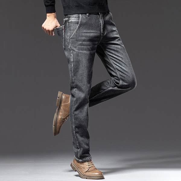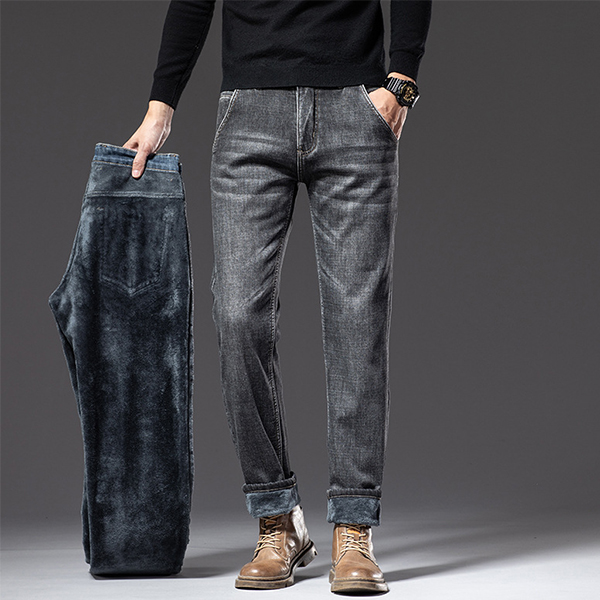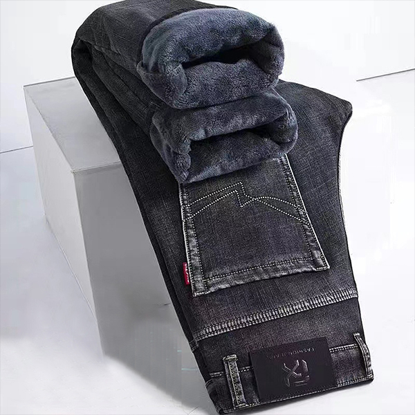Fashion Old-washed Denim Jeans for Men with Warm Plush Lined