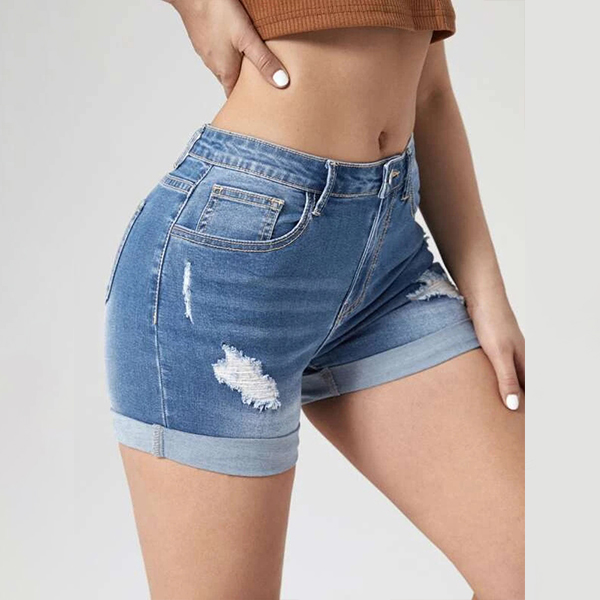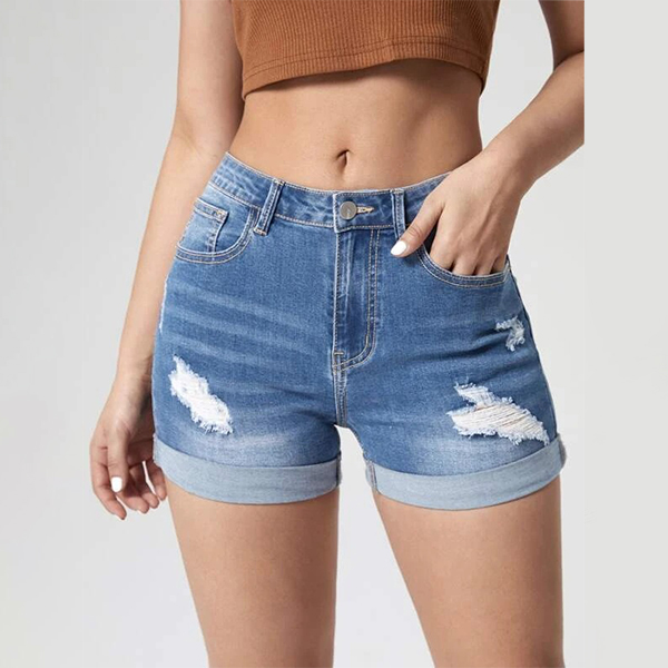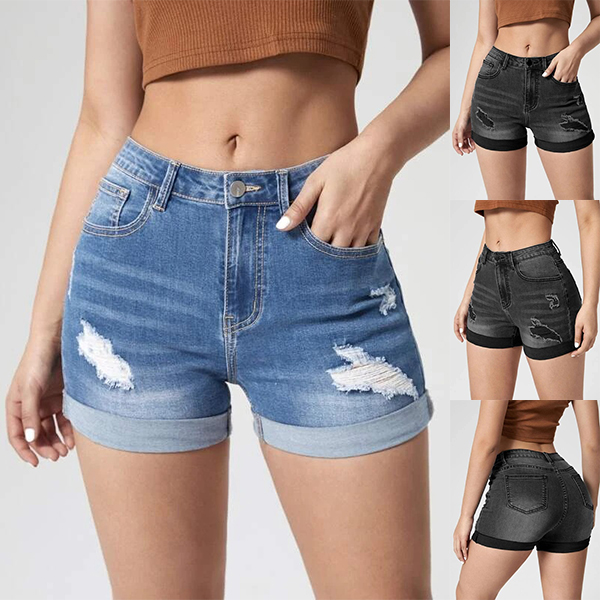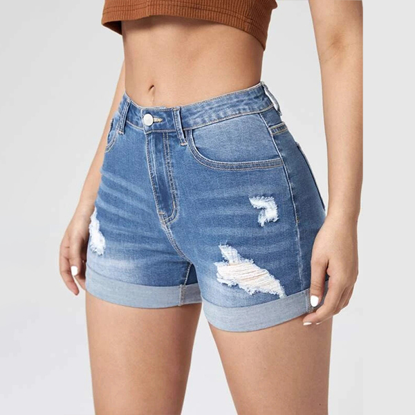 Fashion Old-washed Distressed Denim Shorts for Women