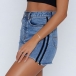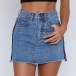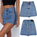 Fashion Old-washed Frayed Hemline Side Stripe Old-washed Denim Skirt