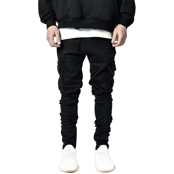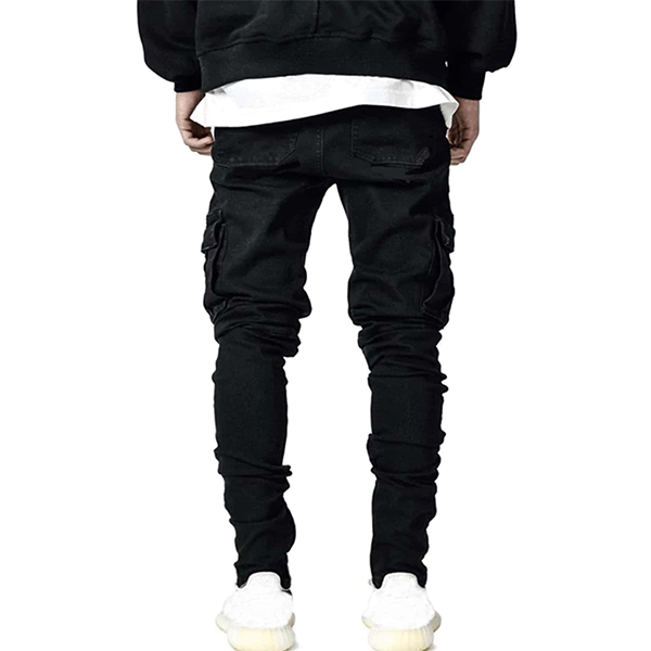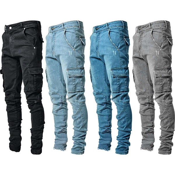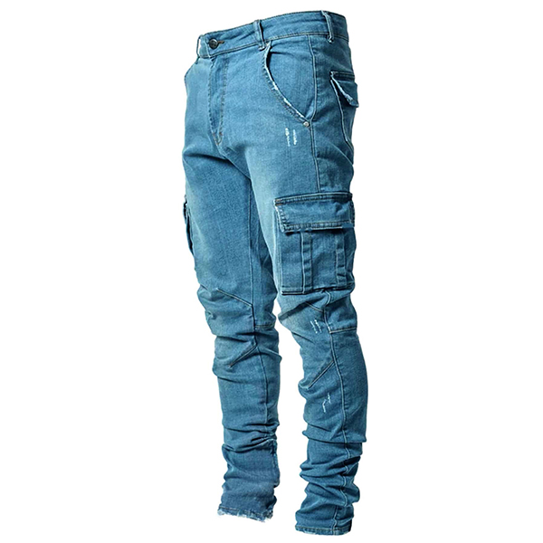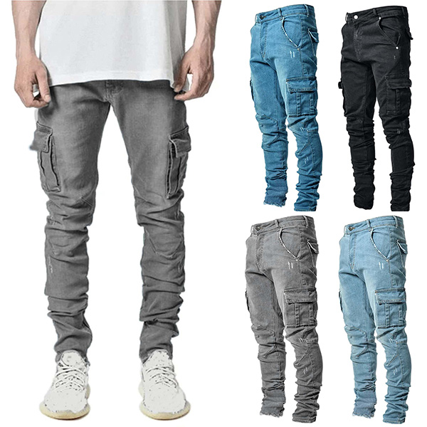 Fashion Old-washed Side Patch Pockets Skinny Jeans for Men