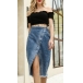 This old-washed denim skirt is perfect for any fashion-savvy woman. It features a slit up the front, frayed edges, and a comfortable fit. Whether you're dressing up for a night out or just running errands, this skirt will have you looking your best.