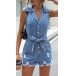 Featuring a stand collar and buttoned front closure, this romper exudes a chic and trendy vibe. The frayed edges add a touch of edginess and casual appeal to this denim romper. The self-tie detailing at the waist adds a unique and fashionable accent to this romper. It creates a cool and laid-back look, perfect for adding a touch of urban style to your outfits. Hope you like it.