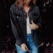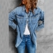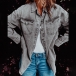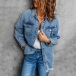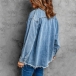 Fashion Old-washed Stand Collar Long Sleeve Frayed Hemline Denim Jacket