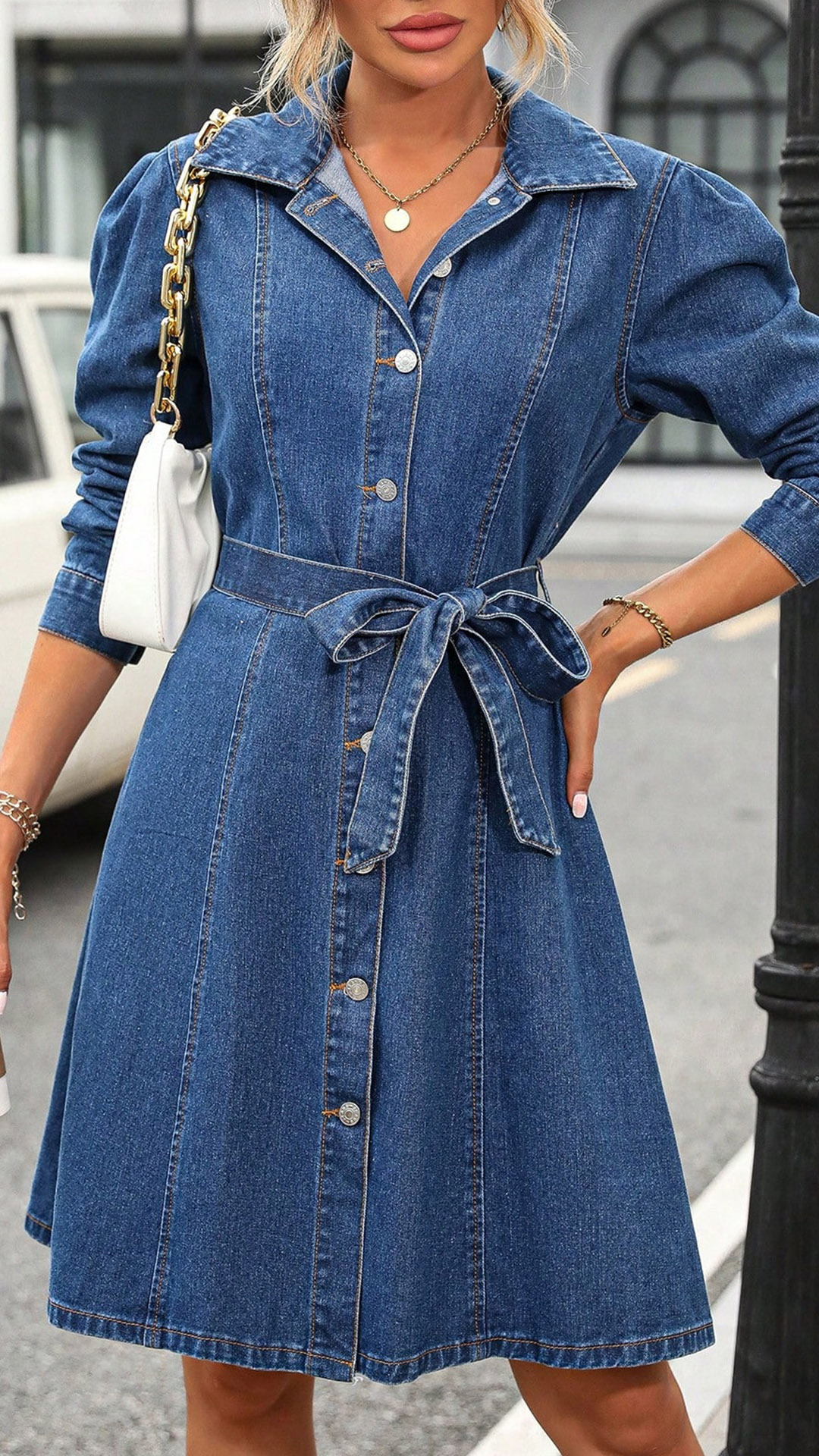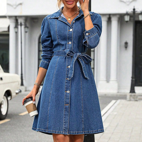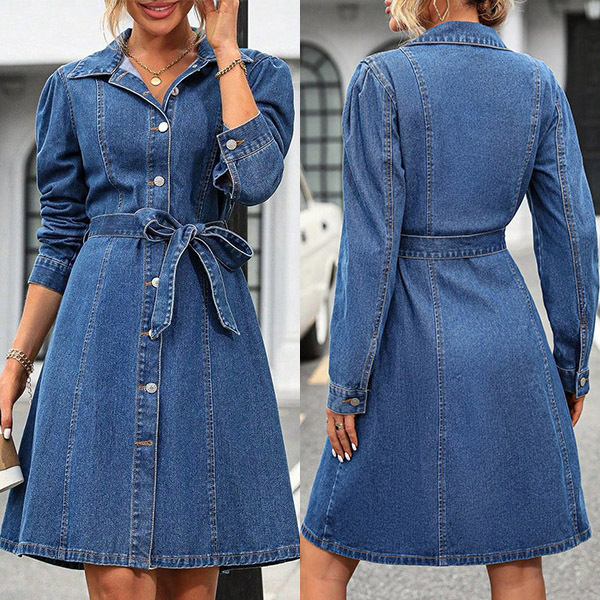 This dress combines vintage-inspired style with modern details for a truly fashionable look. The old-washed blue denim fabric gives it a trendy, worn-in appearance that adds character to your outfit. The self-tie detail at the waist allows you to cinch in the dress for a flattering silhouette. Whether you’re heading to a casual gathering or a stylish event, this blue denim dress is a must-have for any fashion-forward individual.