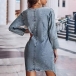 Fashion Old-washed V-neck Elbow Sleeve Zipper Irregualr Hemline Denim Dress