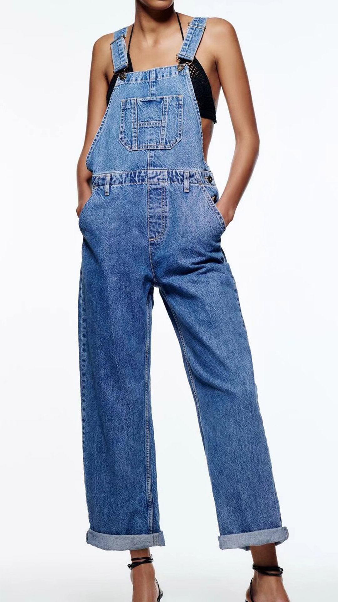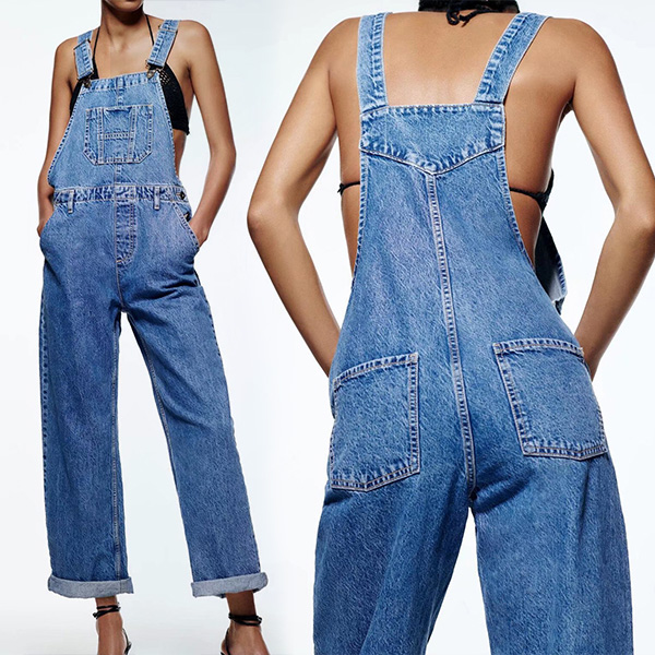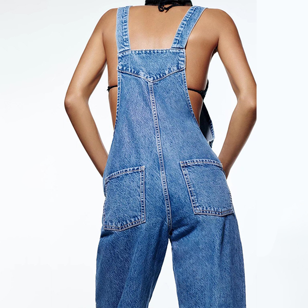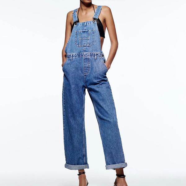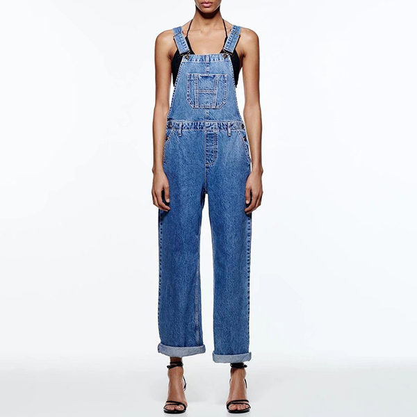 This jumpsuit features a unique and eye-catching wide-leg design that is both flattering and elegant. The old-washed denim finish gives it a classic and timeless look that is perfect for any occasion. Team with shirt for a vintage street-fashion look!