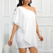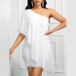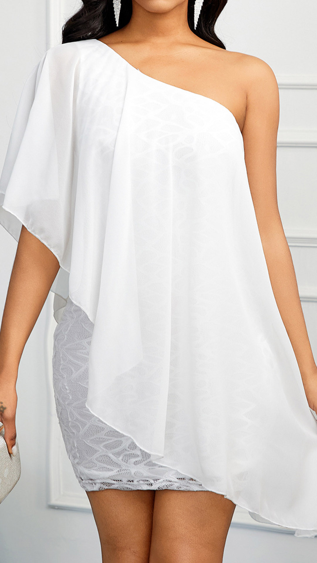 Fashion One-shoulder Lace Spliced Chiffon Ruffle Party Dress