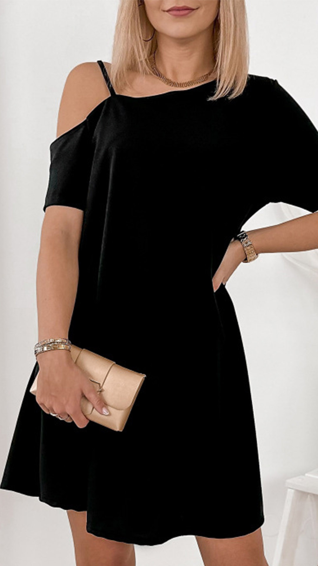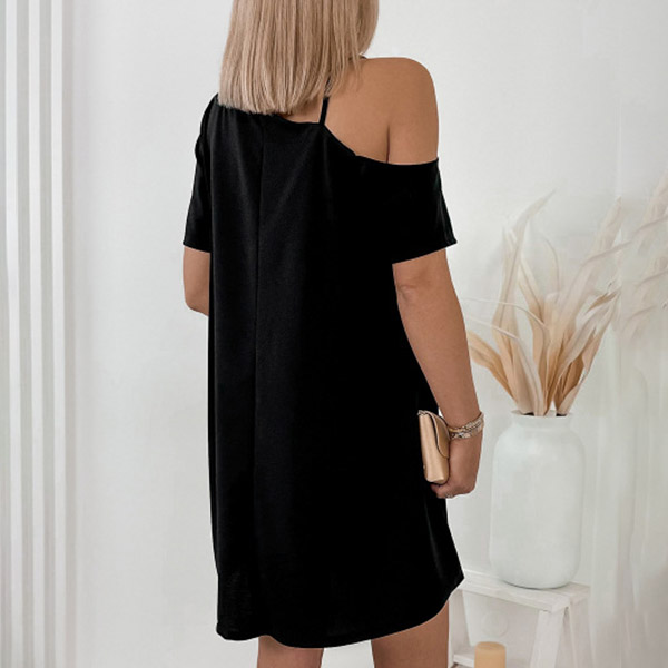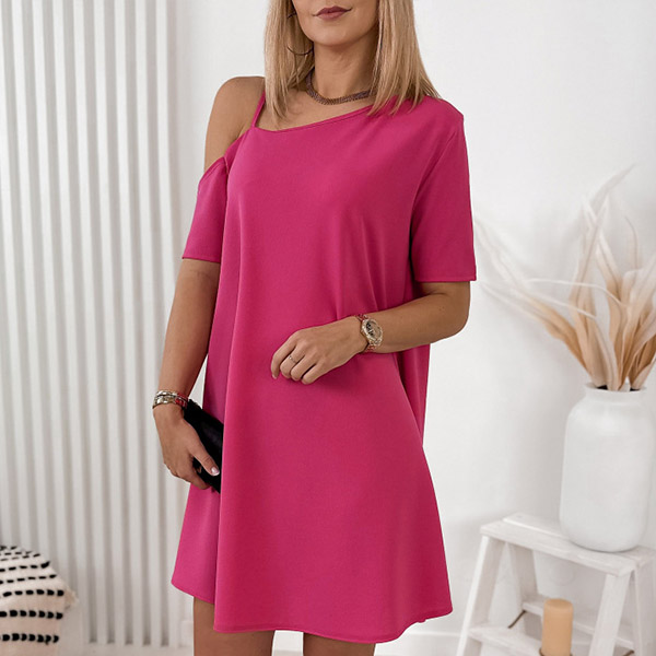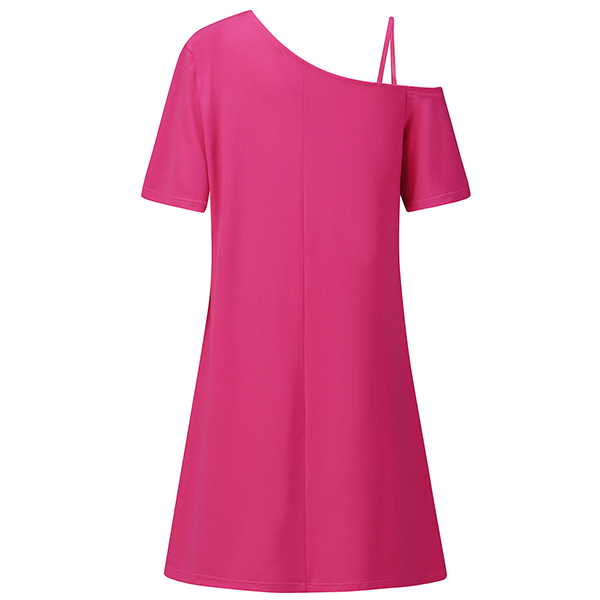 This mini dress features one-shoulder design, short sleeve and crafted from premium, breathable fabrics, it is designed for both style and comfort.